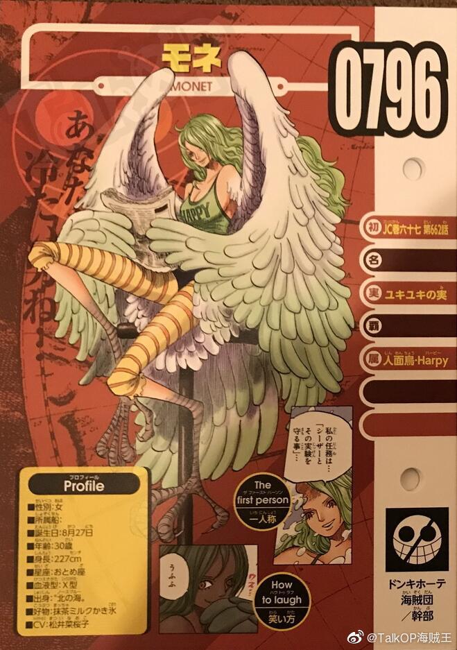 今天8月27日是海贼王中唐吉可德家族成员雪女莫