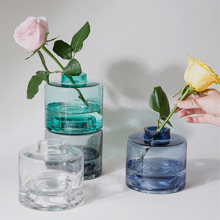 密度家居北欧轻奢插花花瓶玻璃透明家居客厅餐桌装饰干花桌面摆件 Glass Vase Vase Decor