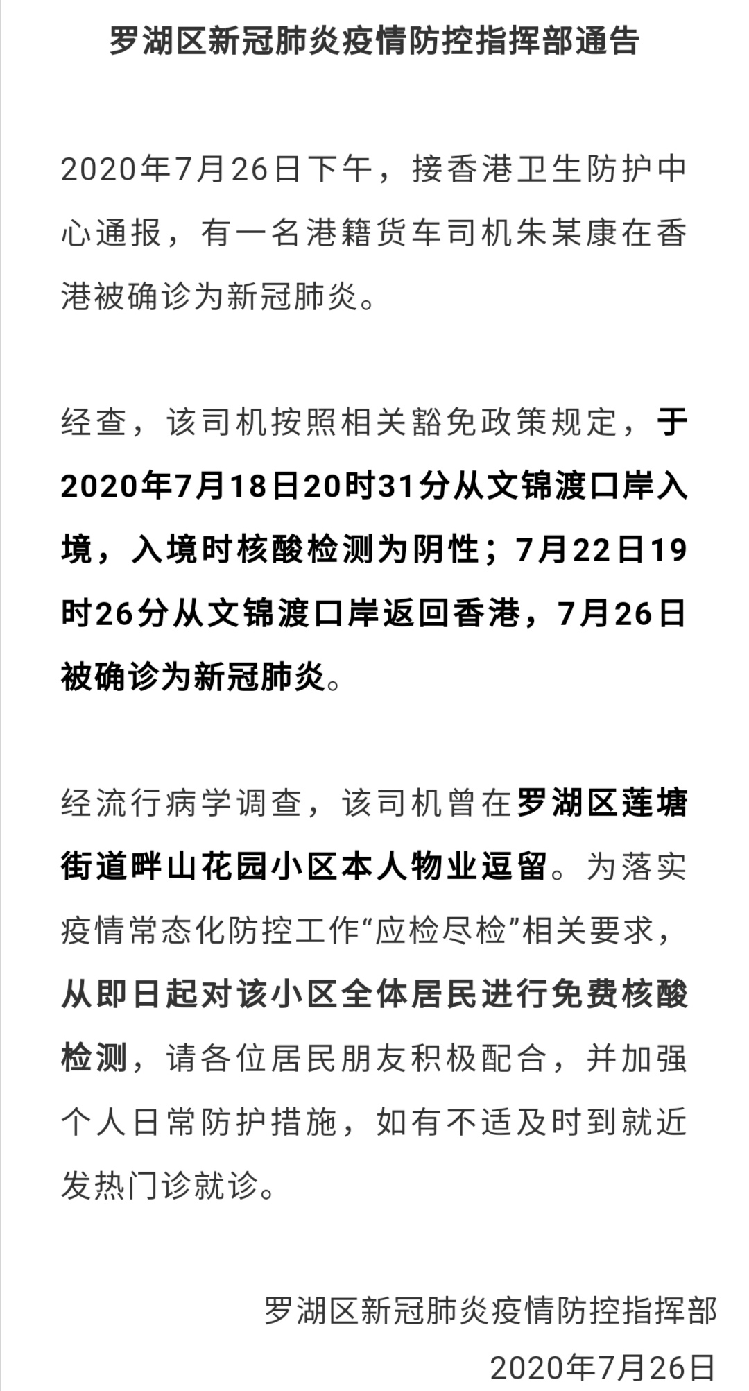 一名港籍货车司机确诊新冠曾在深圳一小区逗留 新闻中心 厦门网