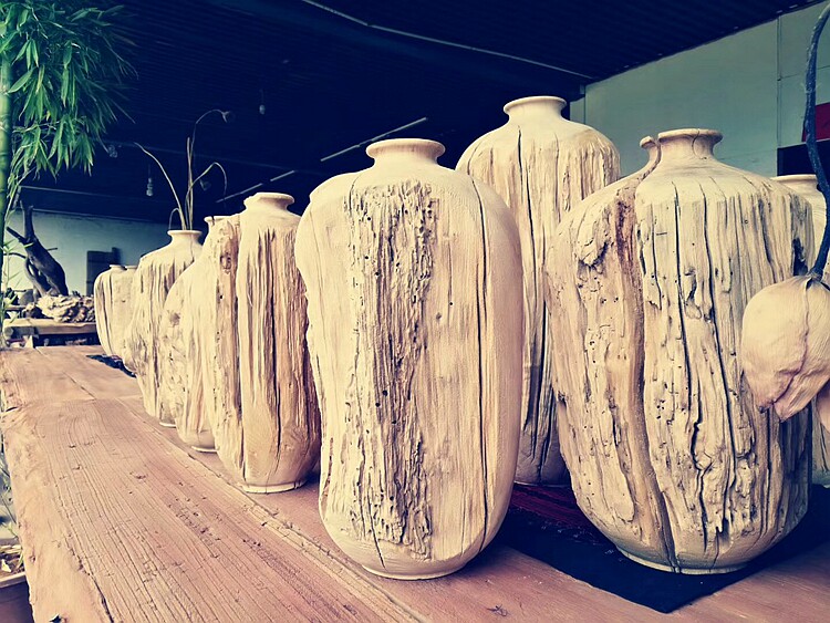 Carrie 現貨實木臺面花瓶枯木擺件客廳圓形干花花器日式茶室酒店插花瓶櫥窗 露天拍賣