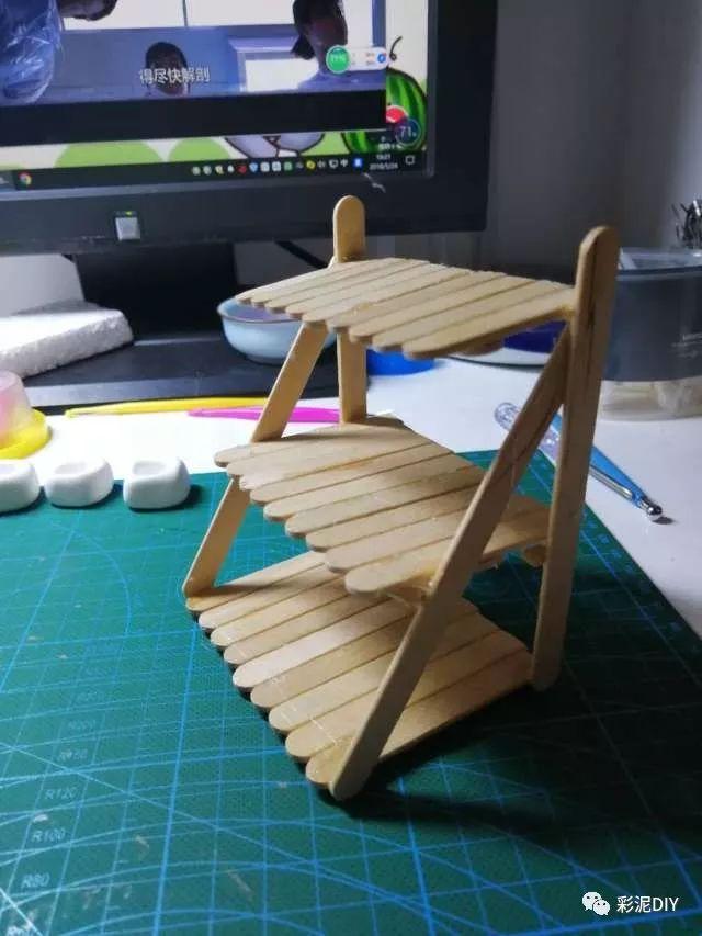 雪糕棒做花架 彩泥做多肉 一组手工diy桌面装饰物震撼
